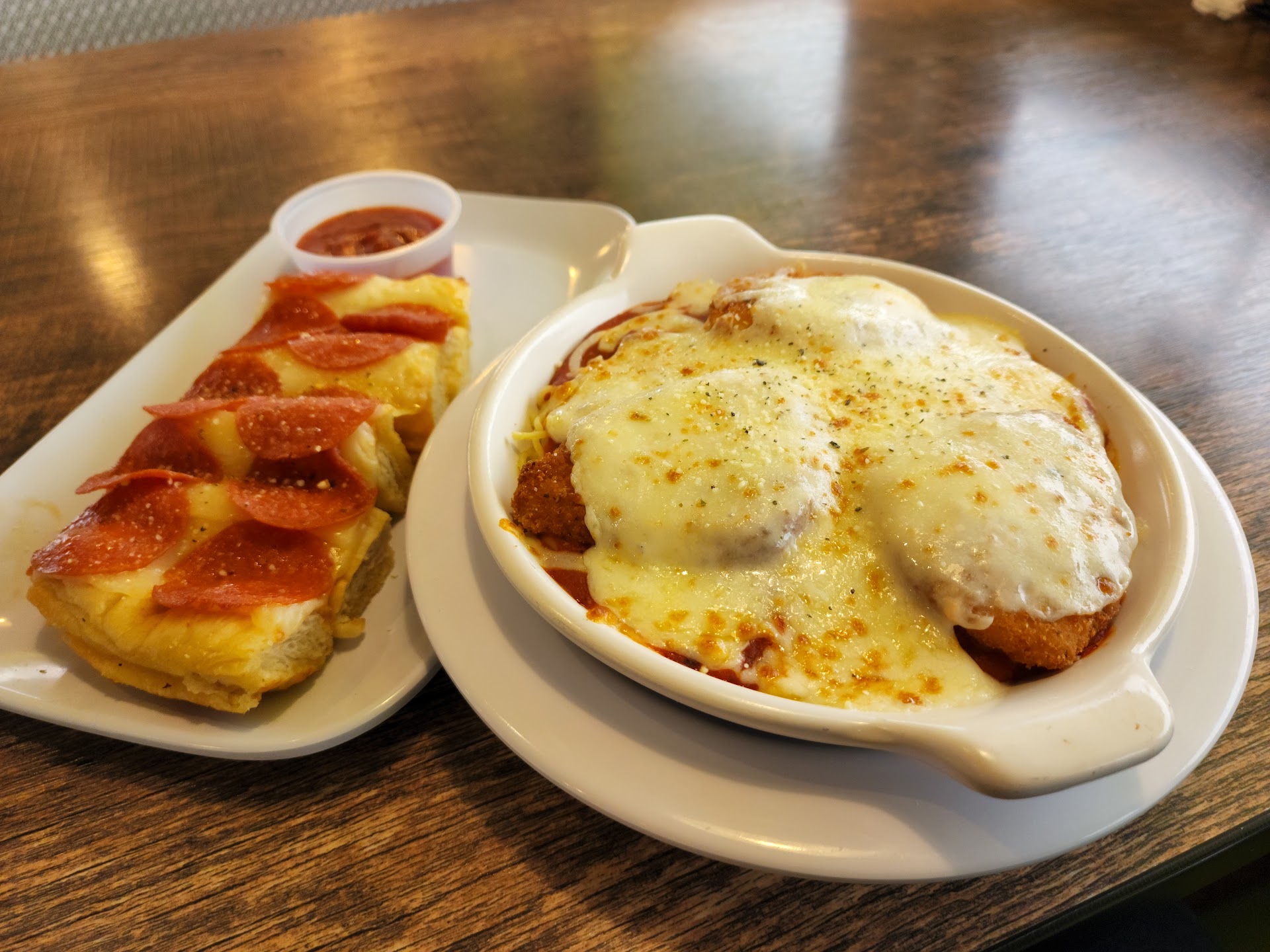 The only thing remotely good was the breadsticks. The pop machine didn’t have any carbonation, and Dr...