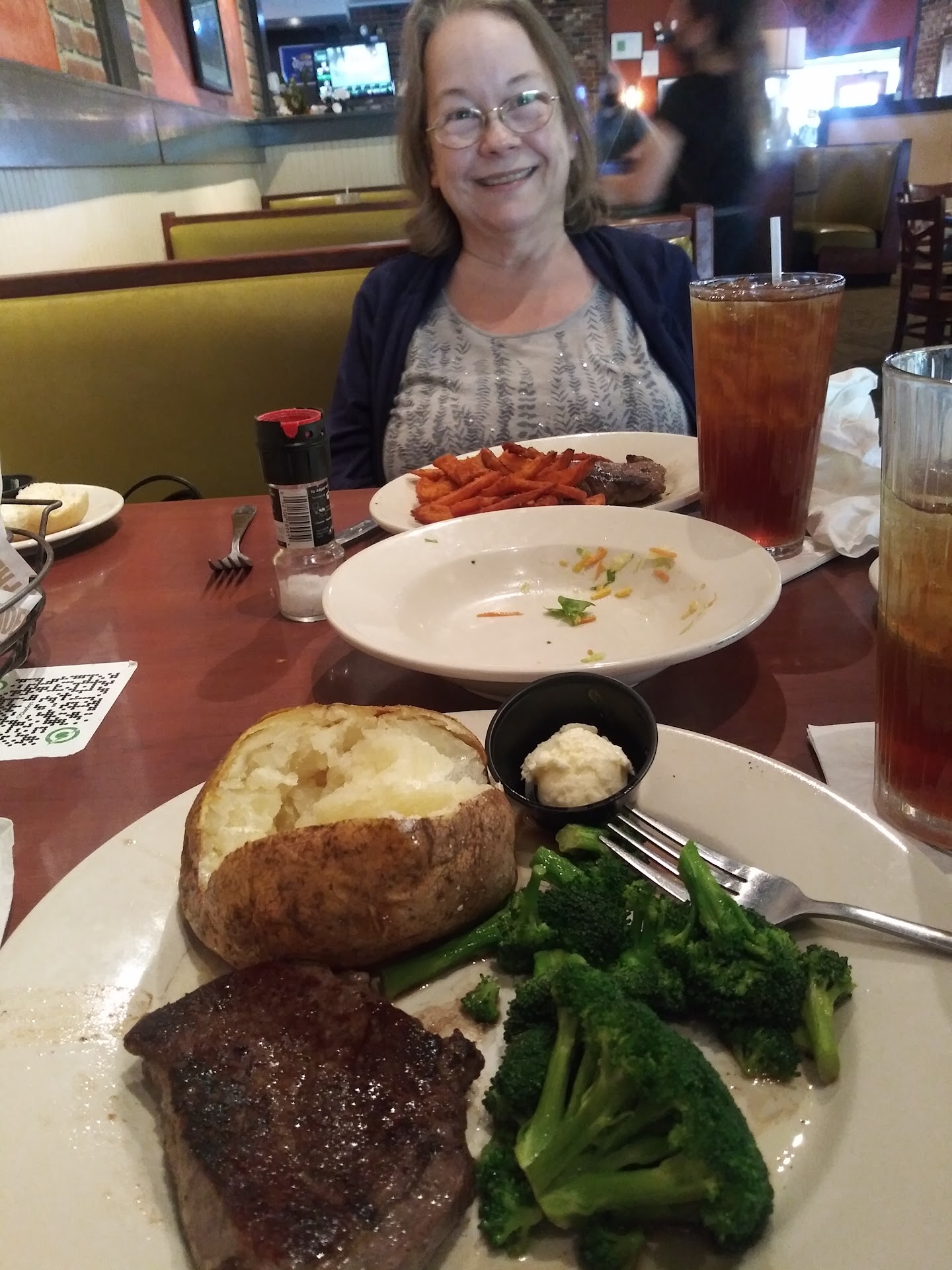 Read moreVisit on 12-22-2024. Not busy at all in the restaurant. Server acted like we were bothering her day. It was my birthday dinner from my 3 sons and one of my sons had not arrived so we got our drinks and ordered appetizers.( we told her another person was coming) Once he arrived, she brought a refill for my son next to him, reached over him to place and ignored him. I had to get her attention to get him a drink. We ordered and she refilled everyone’s drink but mine and when she brought out a tea I expected it to be mine so I said thank you and she said it is sweet tea and left it. My son and I both ordered unsweet tea. I asked him was his last refill sweet and he said yes. I went over and told her that we were both diabetic and she gave us sweet tea could we have unsweet and she said I told you it was sweet tea. I said I know, we both had unsweet tea could we have unsweet please. She was annoyed and didn’t hide it. Every time she left our table she went to bar area and got on her phone. Food….fried pickles cold, orders mixed up, I ordered no onion…had onion.fries limp and cold. My son’s Louisiana steak, half of it looked smooth like bioengineered food. It had a weird texture and taste, chicken strips very thin and mostly crust. My sons asked me not to say anything so I didn’t and that was hard to do. Before I left I used the restroom, it looked as if It had not been cleaned all day and no paper towels. Not a good experience at all and certainly not worth the $120 spent. Gave this a 3 on food being generous for some good points. Fresh hot rolls, burgers and salmon good as well as fried okra. I will not visit again. I don’t want free food, I would like to see this addressed. Didn’t catch servers name, but she was wearing a fireball...