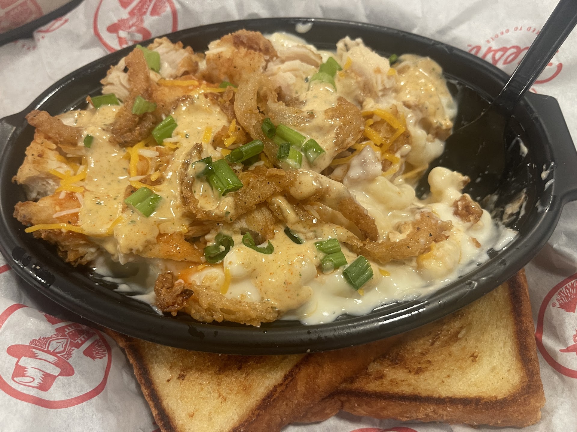 Read moreI have no comment about the atmosphere because we did drive through. This place is less than 5-10 min from my home, I feel like that's important since most our meals were soggy, a little would be understandable of course but not as much as our food was it's like they steamed it and put it in our bag, even the card board take out containers 2 of our meals were in were coming apart. We ordered the adult chicken tender meal (3 pieces is what I got), buffalo Mac bowl, and a kids tender meal comes with 2 tenders... I thought the food was very subpar for the price. My chicken tenders were about 2 inches if that and my kids tenders (only had 2 so no meal swap) were almost double. I could literally stack two of mine to get one of hers. All three meals were a soggy mess and what was edible tasted like it had been microwaved. It was a lot of wasted food for way to much money🤢. I understand they are still new and I am willing to change this IF we go back and it's different, but several friends who have been said the same. The only super great thing was the staff for me.Hopefully they get this straightened out. I did not call or go in to complain. I will probably give them one more shot in the distant future, maybe they are working the kinks out? They were busy also so I thought the food...