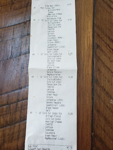 Read moreThere was 2 employees working. One very sweet older lady and another younger male. The older lady was working the entire subway by herself. She made and rung up 7 orders solo while the other guy was just blasting music in the back singing along. The older lady went on her break and while we were eating a few more customers walked in. After they waited 5 minutes with no one taking their order they asked to the kitchen if anyone was there. The guy comes out yelling at them that he can’t make sandwiches because he is doing closing duties (it was 3 hours before close). He tells them they have to leave because the lady is on break. 3 of them left and one guy said he was fine waiting and will wait. The male employee threw a fit over this and repeatedly came out fussing at the customer telling him he was being confrontational by forcing the lady to make him a sandwich. Again he was just simply waiting for her break to end and explained it would be longer for him to drive to another subway and then drive back to his house on the same side of town. The male employee then threatened the customer and walks off to the back again. Luckily the older lady came in from her break and took the waiting customers orders, by herself again. She deserves a huge raise and all the tips from that shift. The other employee was clearly...