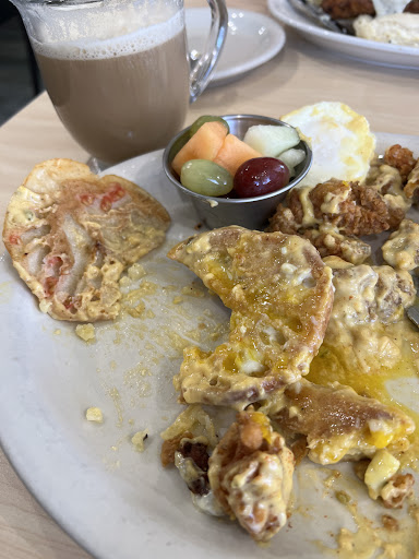 Read moreVery similar idea to Another Broken Egg and Wild Eggs all the way down to the coffee mugs. The presentation and marketing is well executed. The Toasted Yolk is literally a menu item with a fried egg in a piece of toast! All of that is what gets you in the door but what brings you back is atmosphere, good service and good food. I’ll give the atmosphere a 4 of 5. It’s pleasant, bright, clean, not too loud, well decorated and laid out. The service was a 3.5 of 5 just because the food was slow to come out. I placed a to-go order for food and coffee and they brought the coffee out first. It sat there getting cold while waiting on the food. The waitress was nice and efficient and kept the glasses full. And now for what really matters. I ordered 2 eggs over medium, hash brown casserole, crispy bacon and 1 piece of French toast. When the food arrived, it was just better than lukewarm but nothing was hot. The eggs were perfect and that’s where it ended! The bacon was chewy…more like jerky… and not crispy. The casserole was just weird looking. It was actually gray in color. Not very inviting when I’m expecting a golden toasted cheesy look. It was fine (Feelings Internally Not Expressed) but had a mushy consistency as if it had been pre-chewed and was very bland. The French toast was average. Typically, adding a nice thick syrup can elevate even an average pancake or French toast but this was an epic fail. I tipped the syrup dispenser over the French toast expecting a rich, thick pour when suddenly it was as if Niagara Falls relocated. A rush of watery syrup exploded onto the plate…and off! What followed reminded me of eating a bland syrup from the elementary school cafeteria that didn’t elevate anything but my motivation for leaving this review! If you’re looking for breakfast food, go to McDonalds, Cracker Barrel or Panera Bread. If you want to go to the new “hot spot”, this might be for you. But hurry, because over time, it will become just like the food…just better...