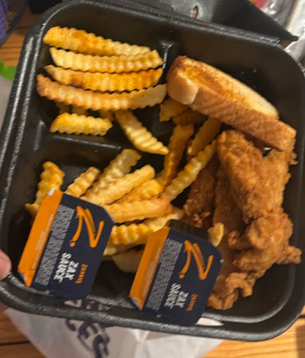 The chicken tenders were small, dry and old/tough, fries cold and soggy, Texas toast not even buttered and stale, didn’t ask me what sauces I wanted while ordering and had to be the one to be like “umm don’t I get some sauce with these???”