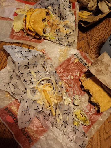 DONT PULL AWAY FROM THE DRIVE THRU WINDOW UNTIL YOU GET & CHECK YOUR FOOD. ITS WITHER GOING TO BE WRONG OR MISSING SOMETHING!! Drive-thru is slow and the guy working the window DOES NOT LISTEN when taking orders. We ordered a double sour dough w/ a sprite and a big bacon chz burger w/ a coke. We asked for a side of zucchini fries and salt packets. We had to wait 25 minutes from the order speaker just to the window. When we paid, we asked for the salt and the guy, er kid working the window said he would put it in the bag BUT we needed to pull forward. ANOTHER 25 minutes, the people waiting has gotten their food, both 2 cars behind us has gotten their foos and then our food and drinks come out. The hands us the sodas and puts the food on our window seal of our cal and walks away. The sodas were two DIET COKES, the meals were MISSING 1fry, and zucchini fries, the sandwiches were both small...