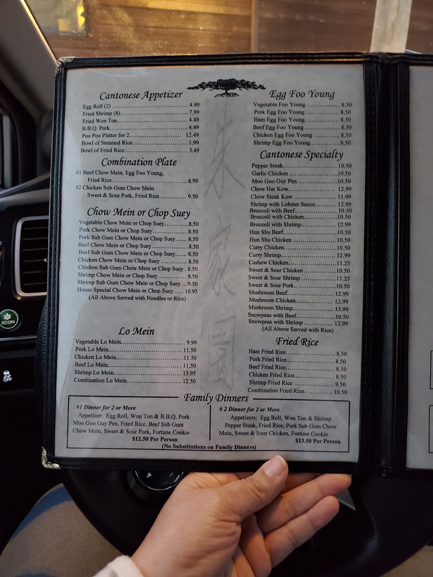 Ordered the combination fried rice - very little chicken, pork and shrimp in it, barely anything at all in the fried rice. It had the weirdest taste too, which I think is because it wasn't prepared in a wok, it was fried on the grill where the cook had just cooked a hamburger (I saw a guy eating one when I came in). So my fried rice tasted like burnt hamburger grease! The egg rolls weren't very good either, soggy and not great tasting. It was Saturday night and there were only a few people there, so that's a good indication of what their...