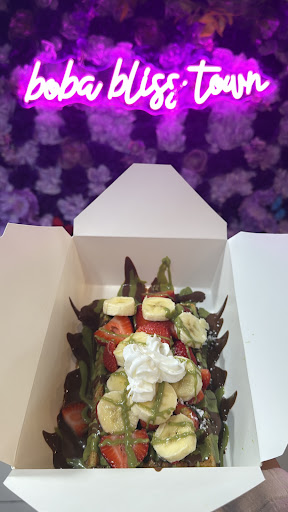 Went here for the first time ever, this past afternoon (Saturday 6/28/2025), after having an awesome lunch next door at South Indian restaurant, Madurai Kitchen (they're -unfortunately-closing down their Arlington Heights restaurant on 6/28, and opening up a bigger restaurant in Glenview this coming August)! Anyway, I've been dying to try Boba Bliss Town, because I love Boba Tea (I usually go to Umbrella Tea House in Schaumburg), but this place is only 10 minutes from home and has a great selection of teas! I had the Dragonfruit Tea with Green Tea in it along with boba, mango popping boba, and lychee jellies! It was perfectly cold, fresh, and flavorful - perfect for the 90 degree weather today! What made this experience even more memorably excellent was the wonderfully pretty, personable and upbeat/energetic young lady who served me - Merissa! She immediately and correctly guessed I was Filipino (which she is too)! We talked for hours! She was very knowledgeable and efficient when it came to taking care of my order, telling me what I could accessorize my tea with, and the other customer's order, too! I also dug the colorful, hip, and chill vibe of the place, with the comfortable table seating and the very cool, relaxing, downtempo R&B jazz tunes playing overhead. I sat at one of the tables in the back next to an interesting bubbly waterfall vertical floor lamp, then I moved to one of the front window side seats where I gabbed with my special new country cousin friend, Merissa! I will definitely be back and will recommend this place to all my friends...