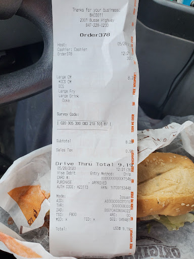 Read moreWhen through the drive thru. Looks like the shift manager or supervisor got upset because I didn't mention a coupon. Didn't give me a receipt. The coupon was for a large whopper meal for 6.99. I gave him a 10 and he gave me back $1.01...I'm pretty sure he just robbed me of a $1.29. I didn't go back because it's my lunch time and I only have 30 mins.