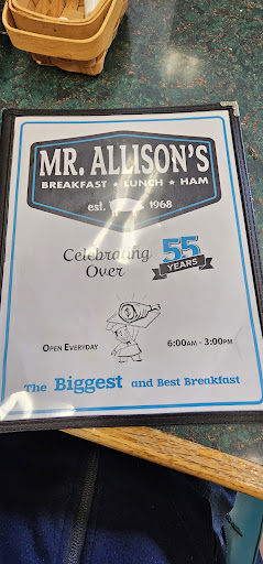 Ā Ā Ā Read moreBig portions and good prices, but customer service is what needs to be fixed to be successful. My family and I went on fathers day to Mr Allison's. Of course like every other restraunt it was busy on that day. My father sat at the counter 20 min before we got there and had coffee. We understand it is busy so we are waiting and waiting. My father notices at least 2 other parties that are sitting at there tables alot longer past them finish there food. One of the waitresses has the audacity to tell my father, he had to get up because he has been there for too long. Instead of saying something to one of the other tables, so we can sit (we had a party of 5). I couldn't believe it so she lost 5 paying customers for her stupid remark. My advice to management teach your waitresses proper etiquette on how to talk to the customers because of pennies that day you lost dollars. I knew Mr. Allison before he passed away, he would have never talked to his customers like that because he knew how hard it is to gain a customer. I will never step foot in there again because of that remark. If that is the case management should take note on how long people are sitting...