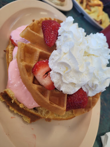 Holy COW!! THIS PLACE WAS GREAT. My daughter and I found this place while in the area for another event at the HS. My son was in the Special Olympics and we had a large amount of time between his events. My son wanted to stay with his friends. My daughter and I were starving. Parking was packed so didn't want to move the car. Found this place and decided to walk!! 1.3 miles to be exact. With out a doubt well worth the walk.We got lucky and we're seated immediately. It did get packed as we were leaving though. I had the best eggs Benedict ever! EVER. That ham is DELICIOUS !! American potatoes were crispy and tender.I would order fries next time,(just a preference). Daughter had a cheeseburger and fries excellent! Both plates were packed! The food being served around us were the same. Piled with food. The pancakes looked great too! Fried steak was crazy huge! Anyway, and this is weird I got a side of grilled jalapeƱos! OMG! DELECTABLE AND PERFECTLY CARAMELIZED SALTY AND SWEET AND PERFECT!! CRAZIEST THING! JUST TRY 'EM!! THIS PLACE IS A TEN TO BE HONEST. IF IT WASNT 15 MILES FROM ME ID BE THERE 4 DAYS A WEEK!! Crazy we found it by chance too. Anyway our tab was $26 bux. I was surprised by how reasonable it was and how much we got and how good. I was completely satisfied and we got a deal!! That's getting rare all these corporate places are a ripoff! WE HAVE TO SUPPORR THESE...