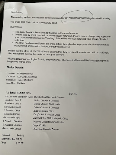 Read moreUPDATE: INSPITE OF SENDING THE EMAIL REQUESTED BELOW BY STORE MANAGEMENT, I HAVE RECEIVED NO RESPONSE OR RESOLUTION. DEFINITELY WON'T BE GIVING POTBELLY ANOTHER CHANCE. What's the point of ordering ahead of time online if the store isn't going to meet the promised time? I placed my order online at 9:53am for a 1:05 pick up time, not only was it not ready when I arrived, it was 15 minutes later than the scheduled pick up time. Asked the cashier why it wasn't ready she was snotty and could care less that it wasn't ready. I spoke to the manager about it and the best he could respond with was that he was working on it, and they had been busy. No apologies, no urgency to fill the order but filling orders for those in line instead. But hey they threw in some free cookies. That doesn't live up to the promise or resolve the delay and inconvenience caused by their inability to adequately run the store. As a result, I was late back to work and unable to even have time to eat my lunch. Won't be back to this location, poorly run with...