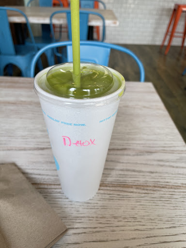Read moreThis was my first time ordering from them. I ordered the Detox Island Green Smoothie, Green Goddess Flatbread w/ Garlic Herb Shrimp and Kale & Apple Slaw. I wasn’t a fan of the smoothie, it’s said to be naturally sweetened however, it wasn’t and it didn’t seem to have much flavor at all. The flatbread and slaw were pretty good. The service wasn’t all that great either, when I walked in it was empty and there were three young adults discussing what they wanted to order from somewhere...they acknowledged that I was standing there trying to figure out what to order and that was pretty much it. I had to repeat my order (not my thing). Personally, I would only order food if I were to eat here again. They’re on the expensive side...I spent a little under $17 for two items (slaw was a side with flatbread), I was about to cancel my order when I asked her to repeat the total and I don’t spend that much with a small business owner who owns a similar smoothie cafe. I went there since I was out and wanted to keep it healthy instead of ordering fast food or having to prepare...