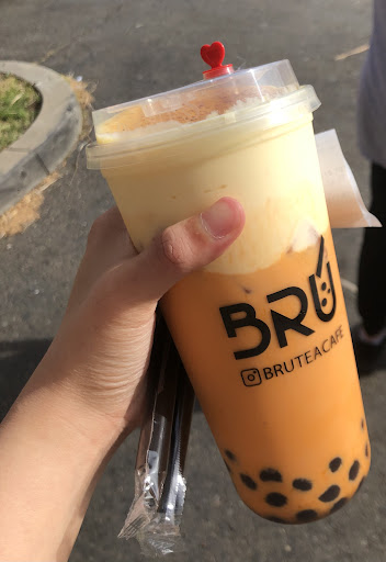 ed to try them again. I remember at the time their menu was still quite small, but this time I noticed they expanded their menu quite a bit and even have bingsu and savory foods now! The place is a little more decorated than I remembered, which is nice as it adds some more character to the shop! They have a kiosk now which makes it really convenient to order and see all the drinks. They do only have one kiosk tho, so we did have to wait a bit as the people in front of us were taking their time deciding. Our drinks came out fairly quickly. We ordered the Hong Kong Milk Tea, Japanese Jasmine Brulee, and the Guava Matcha Latte! Each drink was good, the HK mt tasted like a HK mt; the Japanese jasmine brulee is my fav since it has a nice balance of jasmine with some matcha to it. My brother got the guava matcha and he said it was good but a little too sweet for his liking. I think Bru has a good variety of unique drinks to choose from, but their drinks do tend to be on the sweeter side. Maybe bc we went around 8PM, but their drinks boba was a bit hard and tasteless, but besides the boba topping I think Bru is a nice boba place to stop by...