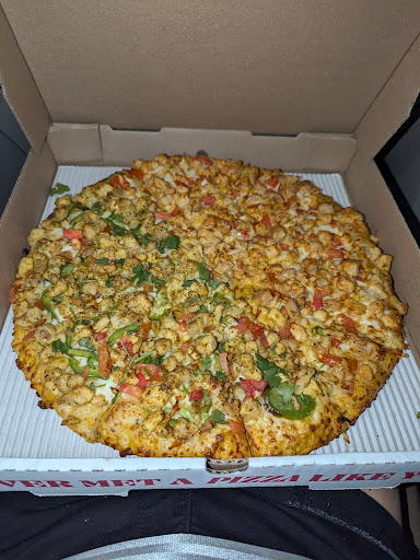 Read moreFirst time trying an Indian pizza fusion and it was delicious! We ordered a large half and half. Half butter chicken (right side) and curry chicken (left side), we opted out of red onions on both flavors. Both flavors were really good, packed with flavor. But I personally liked the butter chicken more. Spice and salt levels were done just right.