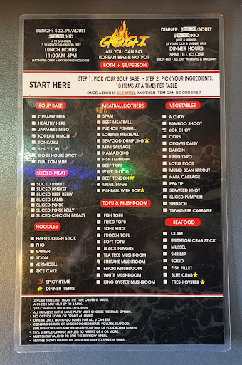 Ā Ā Ā Read moreI do love this spot. š . I love the hot pot, which is like a fondue. You choose your soup base, and you get your individual pot too. I do like the variety of items you can choose to do hot pot. I love the variety of veggies, meat, meatballs, miscellaneous items, and seafood. . Veggies - we love the pea tip, bok choy, spinach, all the mushrooms, white, oyster, and tea tree mushrooms. . Meat , we love the beef rib eye sliced which cooks really quick. Not too fat or lean. . Seafood , they have blue crabs and oysters is enough said š, and clams. . Sauce bar omg š² if you love your sauces to dip for hot pot then your in heaven. No need to bring your own sauce like I did. The sauce bar is amazing. I mean if you love garlic, onions, jalapeƱo to add to your hot pot or korean bbq, oh yesss... . Kbbq , my personal favorite is the galbi, which is a must for meat eaters. . Kbbq for veggies is of course the mushrooms. . Kbbq, we also like the seafood like shrimp. They have lots of choices too. . I personally usually come here to get the hot pot because it's fall and winter season soon. We like hot pot to keep it cozy. . Some improvements needed is get rid of the flies, it's annoying and not too sanitary. Sodas and tea , it's kind of flat, not enough carbonate, not that refreshing like I hope it is. . Overall you can pick 2 or pick 1. The whole party has to do the same either kbbq or hot pot. One is for 33 and 2 is for additional 5 bucks. At the end of the day it is under 40. It is overwhelming to do both, because it's too much to take care, your stuff is boiling and the other is burning. You just don't know which bite to take first is a problem lol. Hope you this helps you with decision and thanks for reading and have a...