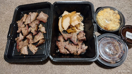 After driving home a few miles, we unpackaged our meal order: Two Way Dinner: Tri-Tip, Chicken Breast, Green Beans and Mac'n Cheese. Another Two Way Dinner: Brisket, Chicken Breast, Beans & Rice and Mac'n Cheese. All of which was still hot.👍🏾