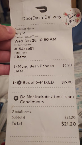Read moreLet me start by saying I love the moch doughnuts over all......but I pay first take a buzzer I look at about 15 other people in the place waiting for orders and about ten doughnuts in the case I get called after all the good ones were chosen and I didn't even get the premium one that was supposed to come in a box of 6 ..I got stuck with plain ones none of my choosing as they claimed they had no more to put out and 4 hours to go being open....my milk tea was just milk and brown sugar no tea at all had me up sick...