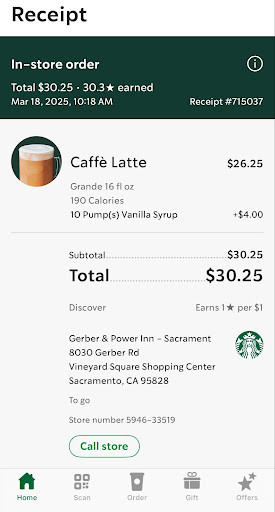 Read moreAs a loyal and long time customer of Starbucks, Iâve been coming to this location for over 12 years. No major issues, however today when I checked my history and noticed that in March of this year (2 months prior) I was charged $30.25 for 1 grande latte. Quite expensive for one medium coffee. I went inside and spoke to the employees there and they were nice but couldnât help me because they said it was due to âa glitch in the systemâ and referred me to call 1-800-782-7282. I called and spoke with a lady named âMoyâ I explained everything in detail and said sheâd noted my acct and was going to transfer me to the correct place but she hung up instead. Moral of the story, check your transaction history as they rarely give out receipts. I feel that after spending thousands of $$$ here they shouldnât be ripping me...