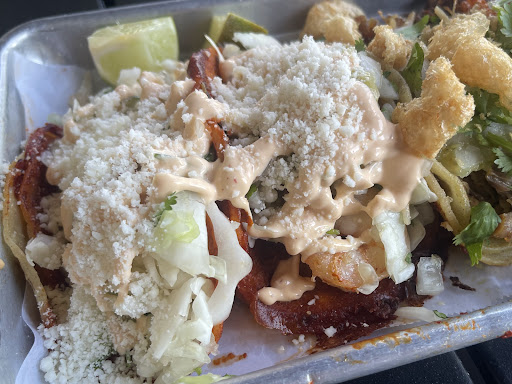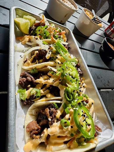 Read moreHere you'll find lots of fusion tacos that are heavily dependent on the weird toppings and sauces as opposed to good meat, well done tortillas and complimentary simple ingredients. I tried 5 tacos. The Classic Asada, the Chicken Adobada (why chicken?), the Korean Seoul, the Anaheim Pig and the Sac Town Fire. Those are the five I tried- but I actually ordered the Dirty Diana and not the Aneheim Pig. However, it's pretty hard for them to hear the orders because they decided to make it like a night club in there, crowded and loud. 🤦🏼♂️(I'm starting so sound my age 🤣) The two GOOD tacos I had were the Korean Seoul and the Sac Town Fire. Both rely on the toppings as the meat is just ok. All the other tacos were just 3s, maybe a 4. Though the inside is crowded and loud, there are a few tables outside and even on a hot day, it's beautiful and shaded. If you're not looking for authentic street tacos, this place is it. But if you want some good flavored slow cooked carnitas or delicious PORK Adobada, spicy & slightly crispy chorizo, head down EG Blvd another mile to La...