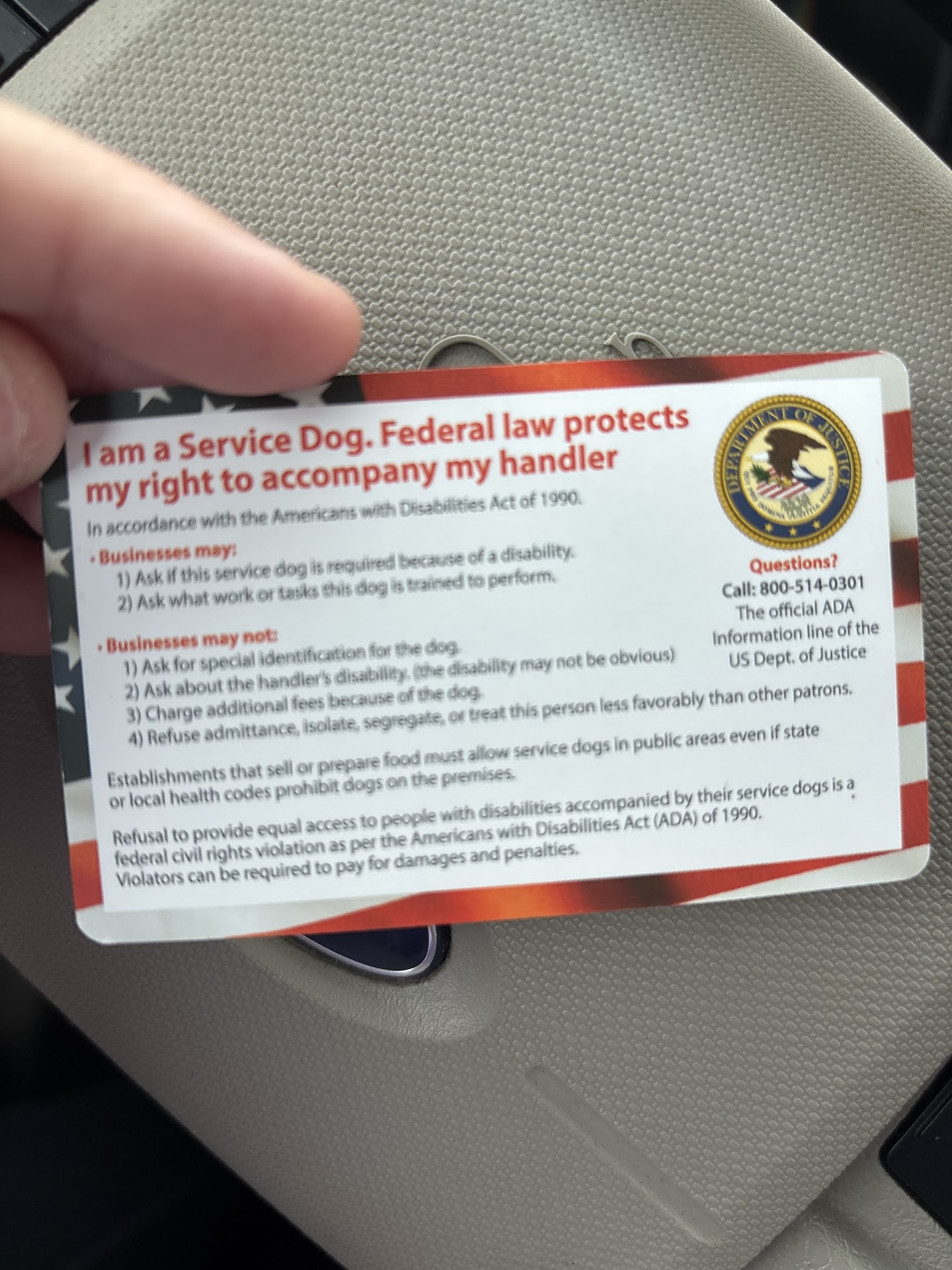 Read moreWent in for my first time to see what they offer and get some fresh baked bread for the family. I have a service dog for my disability and she is only 3.5 pounds with a federal ID card and federal tags on. I was told to leave and that I am not welcome there with my dog. This is a crime to do as I have to have my service dog with me and showed her ID to the man and he was just plain rude and disrespectful to me. They are legally required to allow service dog access and to not deny me. Especially in a public way in front of other customers making me feel uncomfortable and embarrassed for having a disability requiring a service animal. His facial expressions and rude tones were not called for in any way. Went to another local bakery that were fantastic and didnât treat me any different as they...