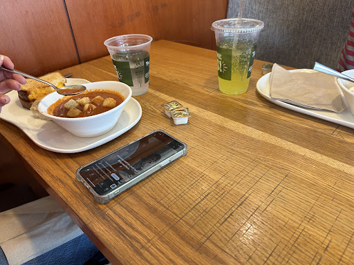 Got a chipotle chicken sandwich with the chicken having clearly been glued together (which is very common for poor quality meats and not something I would pay for at Panera considering how high they're charging for that garbage). Had to throw a lump of "meat" in the garbage. Yes, that's right, a LUMP. It was disgusting. Lost my appetite.