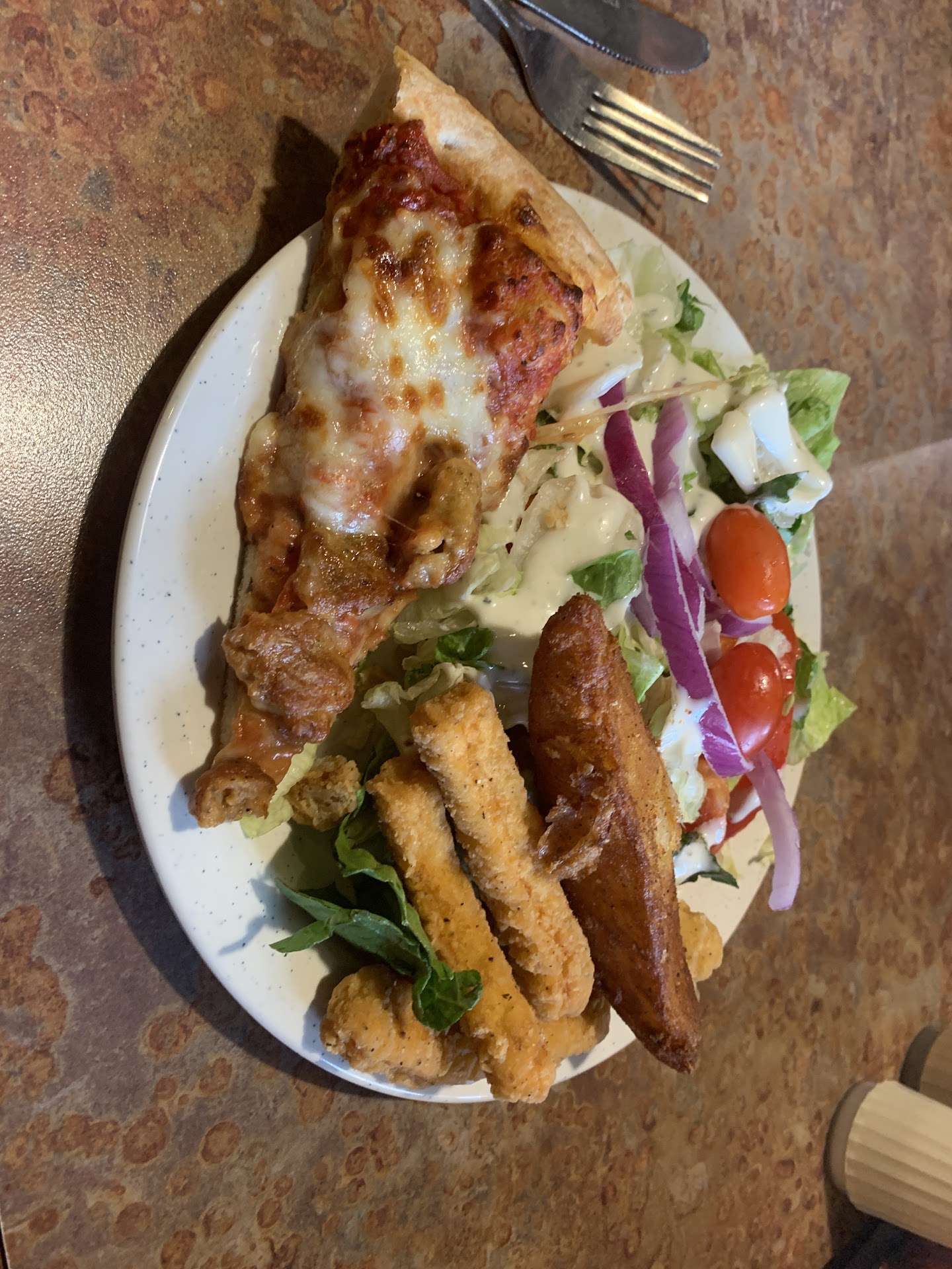 Recommend the potatoes wedges, chicken and cactus bread very highly! And if you don't like pizza sauce there are other options like a butter garlic sauce which is...