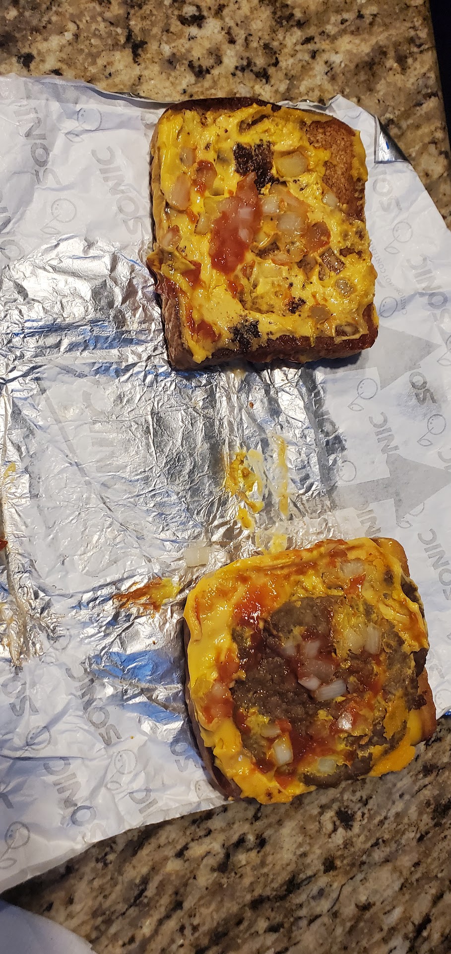 So I left to park somewhere to eat, and of course they forgot the onions. Tater tots were old and not hot. Onion rings were over fried dead (sweet no onion taste) and for a large order for $6 and some change you get like 10-12...