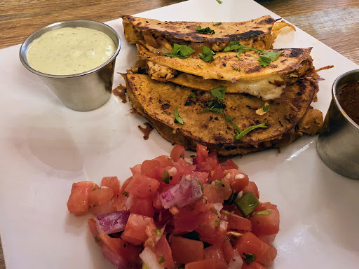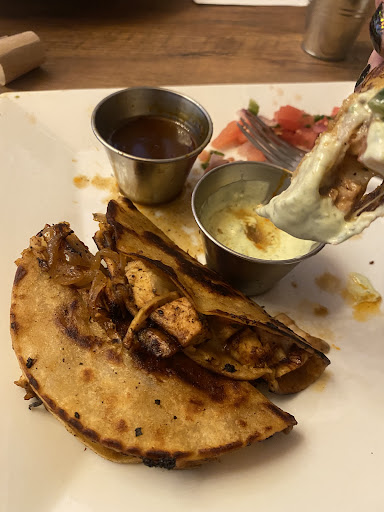 Read moreI ordered the chicken taco entrée and they were absolutely divine, especially with the cilantro lime creme sauce and extra dipping sauce. Just delicious. I was disappointed they were a bit smaller than I’d hoped and I don’t think they provided any more than a tablespoon of pico. I feel like this was cheap and stingy as I didn’t have any pico for my third taco and I felt like I didn’t have enough for the first 2. The second adult entrée was the mac & cheese and it was a very generous portion and also quite delicious. My daughter ordered the kids mac & cheese and chicken strip off the children’s menu which she also loved.