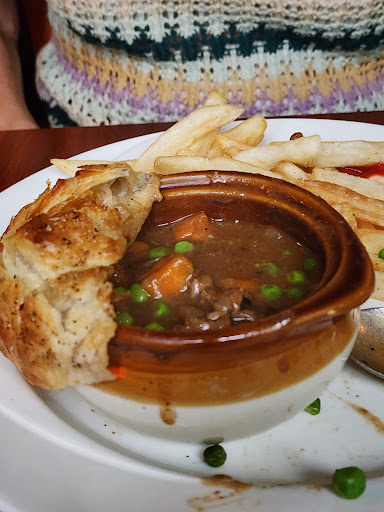 Read moreThis is a quaint place with a cool English eatery vibe.Our waitresses was attentive and nice. I had the soup of the day as a starter, it was over salted.The Thai lettuce wrap was also salty. The beef was slightly better than ground taco meat flavored with powdered garlic seasoning. The pear blue cheese salad was passable.Our entree was the steak and ale pie with French fries.The peas were served on the plate , not in the pie. Why? With a $26 price tag I was expecting a much larger and more flavorful meal. This dish had 6 small cubes of meat with none larger than 3/4". There is no way that dish is worth $26. Finally, the bill came and... you guessed it, a 3-1/2% credit card usage fee will be added for using a credit card. These add on fees really get to me,but that's another topic. My overall rating is a 3 with most of the points for service, and good...
