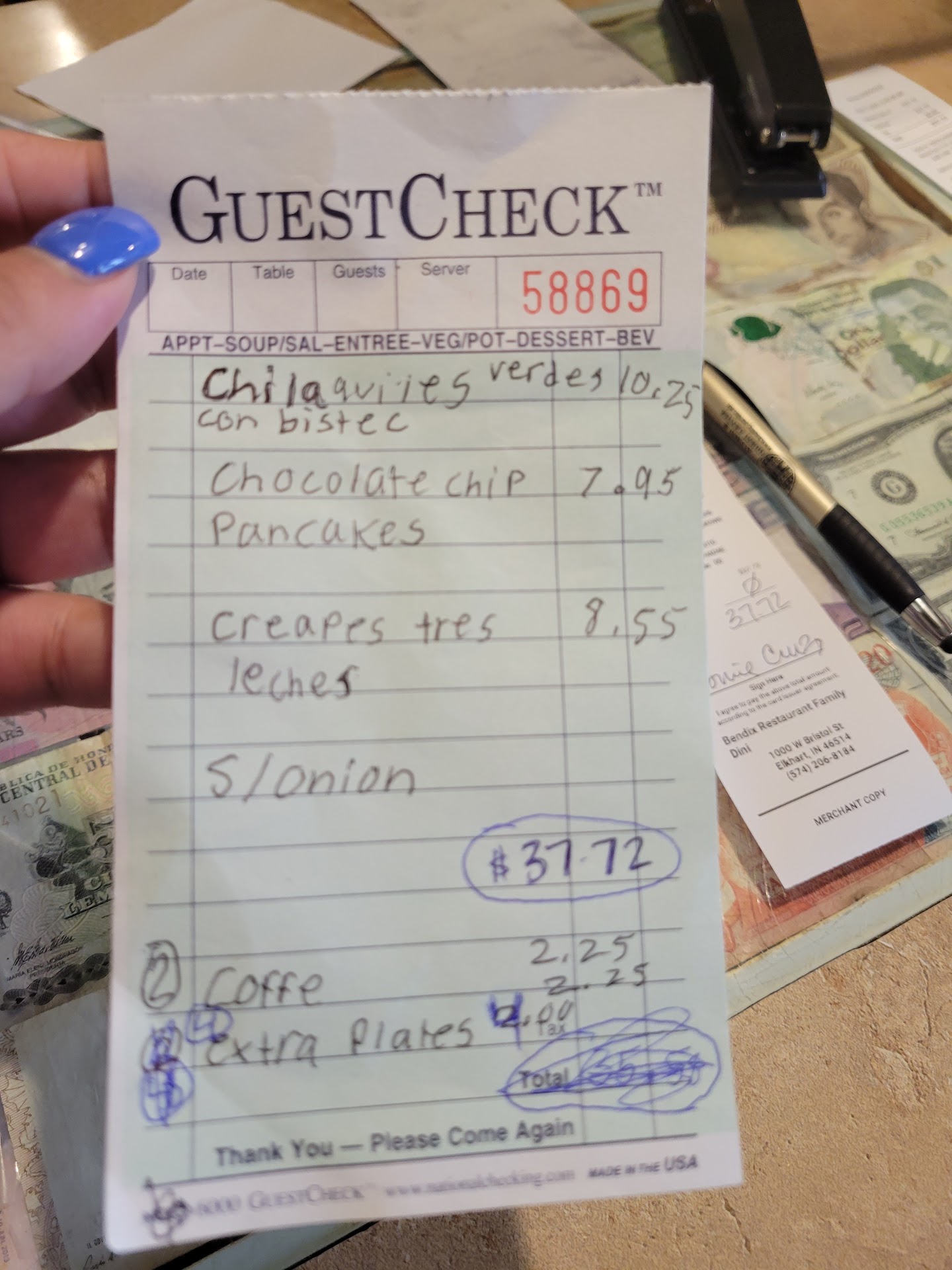 All around bad experience. When we walked in it was pretty dirty then we waited about 20 minutes for the waitress to even come after that it took another maybe 20-30 min to get our food and it came out y. I have a baby and a toddler so instead of asking for it to be changed we just ate it. At the end when my husband was paying he decided to let the waitress know our order was weong just because it might not have been her fault this way she knows it is happening maybe in the kitchen and can jeopardize her tips. She rudely asked why didnt we tell her and since we ate it we couldnt get a discount which was pretty rude, we didnt want a discount we had obviously eaten it we just wanted to let her know since waiters often bear the consequences. Then when we walked away to go pay we could hear her and another waitress talking about us frustratedly asking why we hadnt told her, in a rude tone. Pretty disappointing considering there arent many latino owned places around us and we really wanted to like it there and...