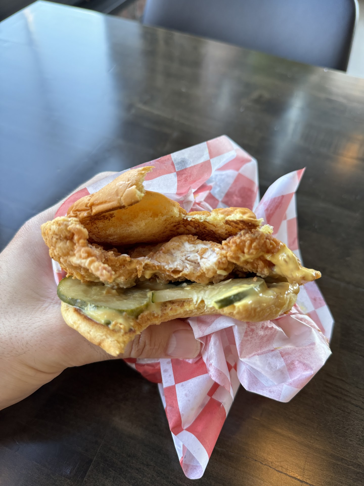 As far as food goes the chicken was crispy and flavorfull. I am noticing a hint of fish from the oil that it was cooked in.