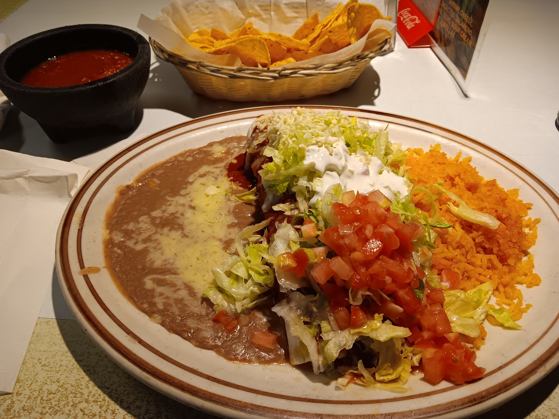 Ā Ā Ā Read moreWe are at this restaurant last night. For starters, we were seated with a television behind us with a Hispanic opera blaring behind us the whole time. No one there was even watching it. The people there weren't friendly at all, neither the waiter nor the man taking our payment. To finish this off, I ordered a dinner with three enchiladas and I told the waiter that I wanted all beef and he repeated it back to me. I only ate one there, it was beef, so you can imagine the surprise and disappointment when I opened it today and the other two enchiladas were chicken and cheese. The only reason I even rated two stars is that the food is reasonably priced (too bad it wasn't correct), and I loved the salsa. Needless to say, we won't be...