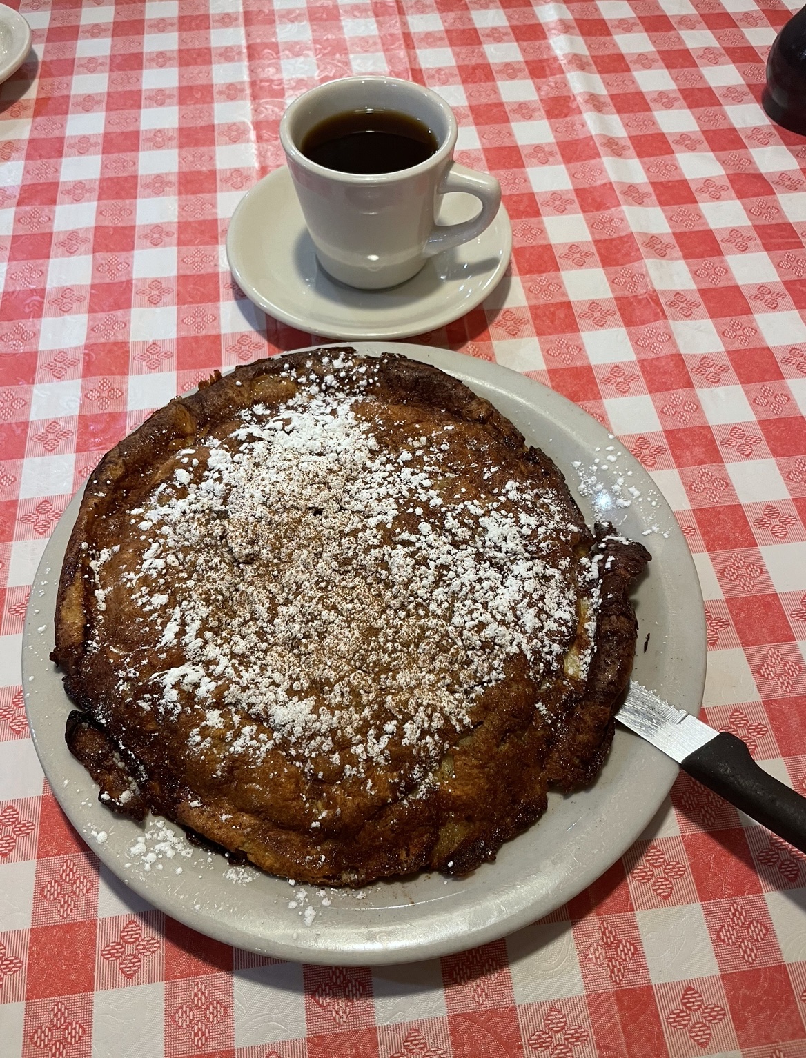 Ā Ā Ā Read moreThe place was packed when we entered at just before 9am, and even when we left, just before 10 am on a Sunday! The interiors are nice and our server was very sweet. I ordered the idaho potato pancakes, and it was not upto my expectations... If they were freshly made, they would have tasted so much crunchier and nicer, but I believe they were frozen a dundee seasoned... So, did not like that part.. and it was served with apple sauce and sour cream... the hot chocolate was from a power, and I got a decent size lump in my mouth when I was sipping from the tea cup (the cup was also chipped). Though the whipped cream gave a nice presentation:)