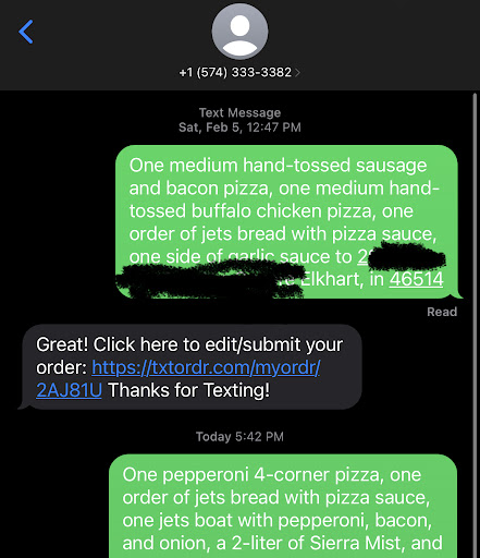 I placed my order through text this evening, and an hour later received a call an HOUR after my order was placed from Jessica the “manager”, stating that they don’t deliver to my address, and I questioned her as they have delivered to my home as recently as the 2/5/2022, and she stated nothing has changed but a manager must always bypass it. I work in AI so I’m familiar with how these systems work and I sincerely doubt the text-to-order system just has a manager sitting around to “override” text orders for this store. Her response was she that only had one driver.