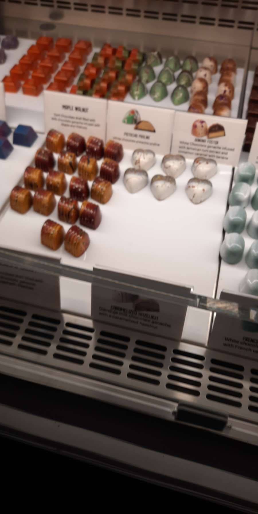 I wasn’t very hungry so I just got a chocolate filled with Carmel which was delicious. Chocolates are about $3 but are gorgeous and good. They also serve pepperoni bread made in house. I didn’t try any but it was advertised everywhere so I found out it’s like a take and bake so it’s fully baked but you can warm up in oven and it has over 70 slices of pepperoni per loaf!