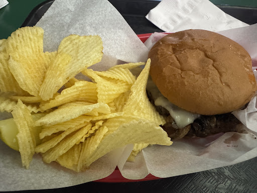 Stopped in for a quick lunch. There was no line when I walked in. Ordered a grilled chicken salad with ranch and onion rings with ketchup (don’t judge). After I ordered, the gentleman that took my order said “everyone came in at once so it might be a little bit”. No problem, I figured it would take 15min or so to qualify as a “little bit” for my salad. I was wrong. Over 45min later my order came up. The gentleman behind the counter was very sweet and incredibly apologetic and even gave me a cookie for my wait. I hit the road to my destination and open my to go bag to find: green peppers on the salad (not listed as an ingredient on the menu and I ordered this salad specifically because it didn’t have peppers like some of the other salads), no ketchup, and a knife instead of a fork to eat my salad. Not the greatest experience unfortunately and not the quick stop I assumed it would be and...