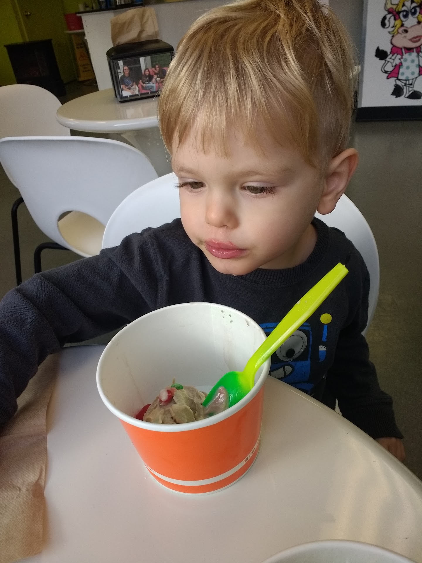 Read moreBeen going there for several years. Took daughter, girlfriend, and family there. Absolute couldn't be happier with employees, owners and the quality.. Just the other day, drove 20 minutes after working all day. 1 machine was down, yellow cake batter tasted odd and no flavor, like it had a refrozen texture. Also bought chocolate. Yes, I bought 2 cups to enjoy. Chocolate was also grainy, and very bitter. No more punch cards, replaced with a less quantity when you get enough "stars". I usually can't wait to go back. But this time I could barely stomach the not yellow cake batter. I should have gone back in and got my money back. I was so disappointed that I was not gonna waste my time. CAREFUL, taste a sample if you can, if they even allow that any more. The price is higher which is...