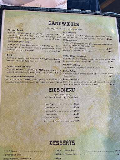 Ā Ā Ā Read moreThe food and service make up for the atmosphere. Although the atmosphere isnt horrible it could definitely use some working on. Could do tons with that name as far as decor. We found this place by chance online when traveling through and the campground manager of the campground we were staying at said it was a pretty good place so we decided to try it and boy am I glad we did!! If we are ever back in that area we will definitely be back!! Hushpuppies are awesome!! Definitely getcha some!! All the food was fabulous!! Our watriess was super friendly and we didnt want for anything yet didnt feel overly waited on (if that makes since). I got beef tenderloin tips, my husband got the cowboy burgar, and my son got the NY strip. Everything was perfect! I got a sweet potato and house salad, they both got fries. Again delicious. I had mushrooms on my beef tips and they we big and a lot of them. We all left with super full tummys and smiles on our faces!! And a couple doggie bags!! Dont miss out on this place!! Well worth ur money!! Speaking of money...extremely well priced for everything we ordered also! Appetizers, a couple of beers, 2 steak dinners, and a burgar meal...with tip and we were right around the $100 mark. And I tipped 25% because yes, our waitress...