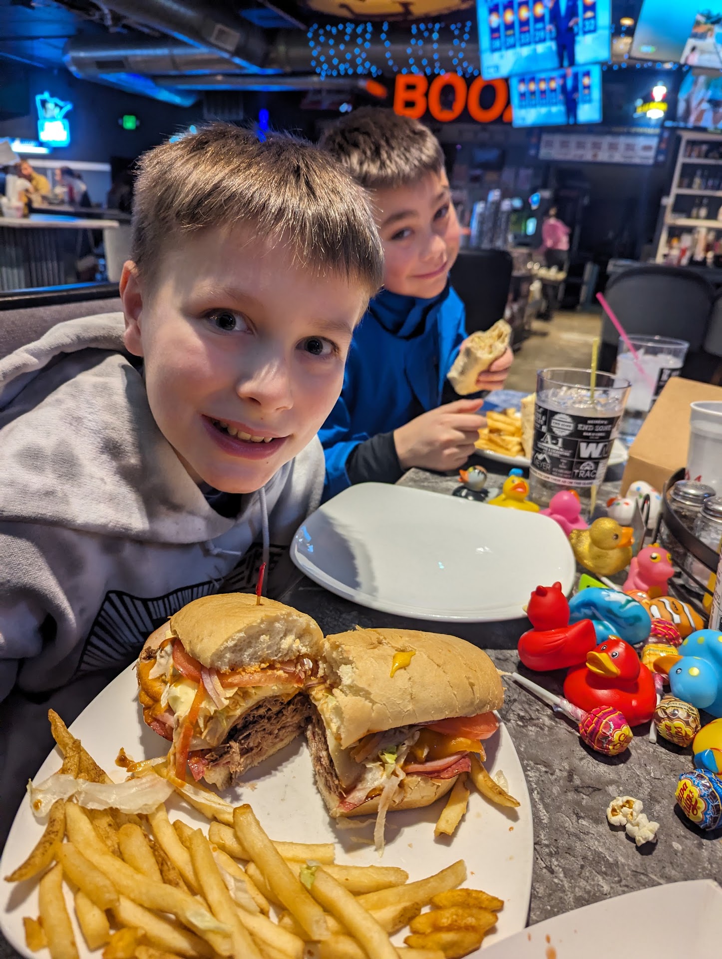 First experience here. I saw all the reviews and the photos. I thought we would give it a shot. The environment while a bit loud for my taste was really nice. Everything felt clean. 3 adults and 3 teenagers in our group. Later in the evening on a Saturday night. The place was pretty busy. So understandably it took a while to have someone come take our order. Our food also took a while to bring out to us. Once our food was delivered we weren’t checked on any more to see how the food was and if we needed more drinks. Prices are a bit high in my personal opinion but they do have large portions. The food was good. Nothing stood out as a omg I must have this again. Our checks were divided correctly (me and my son) and then the rest on one check. My bill was $50 before a tip. If a group would want to come I’d go. But I wouldn’t go out of my way to go back. Give it a try. You...