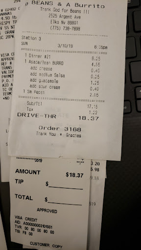 Read moreI had a very terrible experience at 9 beans and a burrito in Elko Nv. While visiting Elko to see my family I decided to pick up breakfast burritos for my sister and mother. The burritos were wrong and when I repeated myself saying bacon and eggs breakfast burritos 3 times they thought that I wanted potato and egg burritos. They messed up and would not give me free burritos that were the thing I ordered: BACON AND EGG NOT POTATO AND EGG! I had to drive all the way home to discover that the order was wrong. When I called back to take the burritos back they had to ask the cooks if they put bacon in the burritos as if I was lying. It was insulting to say the least! When I took the burritos in to show them and get the replacements I asked to speak to the manager, well there was no manager so a high school girl around the age of 16 got to perform the managerial duties of taking care of upset customers. She did not do a good job! She did not make me feel as if anything got fixed, and her attitude was terrible. The establishment is a terrible establishment with mediocre food and terribly...