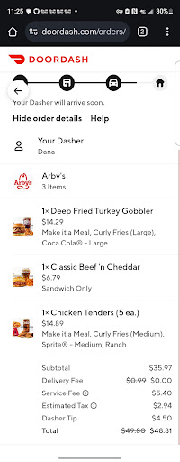 Read morePlaced a dash order late at night. The delivery was extremely fast around 10 minutes. When the driver arrived he gave us our drinks and 1 bag. In the bag was 2 sandwiches nothing else. I told the driver items were missing he said he would go back and check if there was anything else. He text me a few minutes later saying they were already closed. According to online they closed 45 minutes early. Opening the 2 sandwiches we got they were old beef and cheddar that sat on the pass long enough to harden the buns and change the color of the meat. We got a regular beef and cheddar and what seemed like a 1 pound beef and cheddar in our bag and the sodas we ordered. This was obviously employee who didn't give a $h!t. I would reevaluate my business and my employees if this was my business.