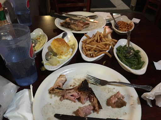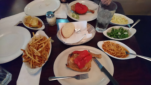 Our main dishes came out soon after, followed by confusion. The chickens had a canned red pepper unceremoniously plastered on top, which was not enough to mask the sawdust-like mouth feel of the twice-overcooked bird. The sizes consisted of freezer-burned French fries, slimy overcooked pasta, mushy scalloped potatoes, and soggy green bean pieces. We were too scared to try the rice.
