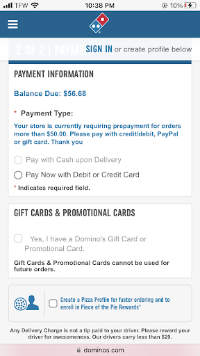 Read moreTO BEGIN WITH, I HAVE ORDERED FROM ANOTHER PIZZA PLACE AND I ORDERED THE EXACT SAME THING AS I DID FROM DOMINO'S. BUT YET WHEN I GOT MY ORDER FROM DOMINO'S IT WASN'T THE SAME AS THE OTHER PIZZA PLACE. I HAD ORDERED A PIZZA AND ASKED THEM TO DOUBLE UP ON THE PEPPERONI AND PUT MUSHROOMS ON THE WHOLE PIZZA, BUT YET WHEN I GOT THE PIZZA, THE PIZZA DIDN'T HAVE DOUBLE PEPPERONI AND IT BARELY HAD ANY MUSHROOMS ON IT. BUT YET THEY ACTUALLY CHARGED ME MORE THAN WHAT THE OTHER PLACE DID. AND THE FACT IS THE PERSON WHO DELIVERED IT, WAS 10 MINUTES LATE AFTER THE QUOTED TIME OF DELIVERY. THIS THE 2ND TIME THAT DOMINO'S HAS TOTALLY MESSED UP ON MY ORDER. AND I JUST TRIED TO PLACE AN ORDER WITH THEM ONLINE, BUT YET IT WOULDN'T GO THROUGH, IT WAS TRYING TO GET ME TO CHANGE MY ORDER DATE. I SERIOUSLY DOUBT THAT I WILL BE CONTACTING THIS PARTICULAR LOCATION AGAIN, BECAUSE THEY CAN'T SEEM TO GET THEIR ACT TOGETHER NO WAY NO HOW MUCH EFFERT THEY PUT INTO DOING IT. BECAUSE TO ME THEY SEEM LIKE SIMPLTONS ,WHO HAVE NO IDEA AS TO HOW TO...