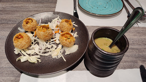 I had Vindaloo with Chana at medium -- perfect level of heat, given that vindaloo itself IS hot. The chana were cooked to perfect texture: good density yet soft with creamy density. The rich sauce was amazing with complexity as good Indian cuisine needs to have. The accompanying rice? Again, perfect texture and temperature. My husband ordered Biryani with Tofu cubes that had absorbed the delicious flavors of the biryani spices that they cooked in. He had a side of tandoori roti, charred nicely and coated with a light layer of oil. I had an order of papadum and they were crispy and fun, came with two chutneys to accompany them, mint cilantro, and tamarind.