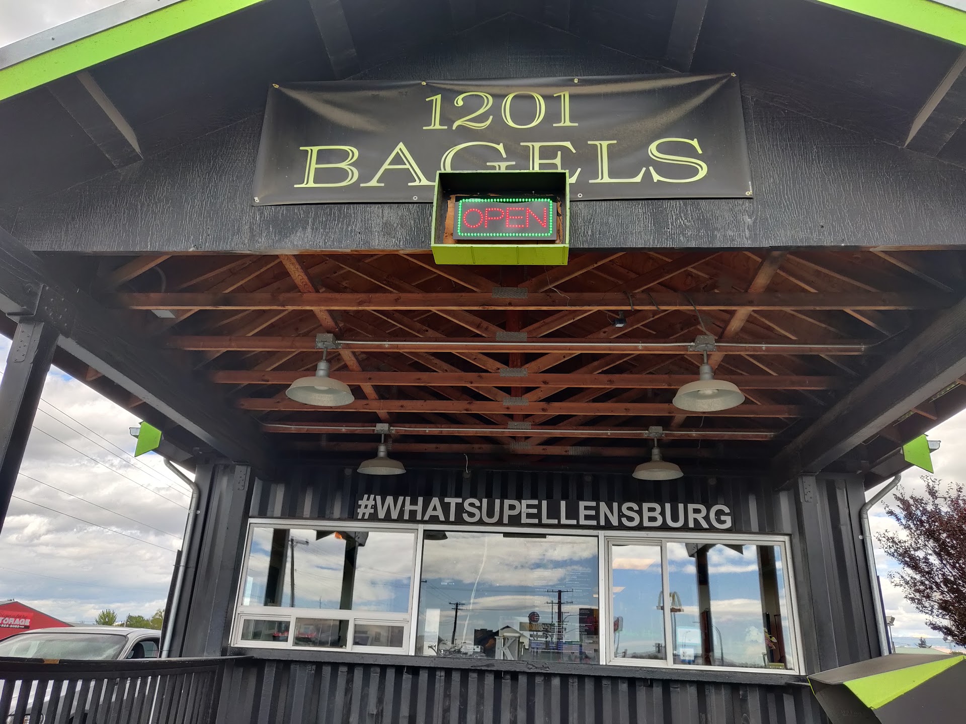 Read moreWe stopped by on a fishing trip headed to the San Juan’s. We prefer bagels over donuts and 1201 Bagels was recommended to us. It was a beautiful sunny slightly windy Thursday morning. They have a few tables and chairs to sit at. The menu was extensive with many different choices of bagel flavors and different cream cheese flavors. They had bagel sandwiches and even a bagel burger. We had the salmon lox bagel on everything bagel and the salmon Benny on pesto Parmesan. There was a little bit of a wait but once I ordered the wait wasn’t long for our food. Both bagels were soft and toasted . They both had great flavor. You must try the pesto Parmesan bagel. It’s delicious. It’s a little extra for the cheesy bagels but it’s worth it. The salmon Benny has smoked salmon, spinach , a fried egg and the most delicious creamy hollandaise spread. It was the best bagel sandwich I have ever ate. The lox bagel sandwich was everything I expected from a salmon lox. Creamy, with a bite from the red onion and tang from the capers. Definitely recommend to try this place...