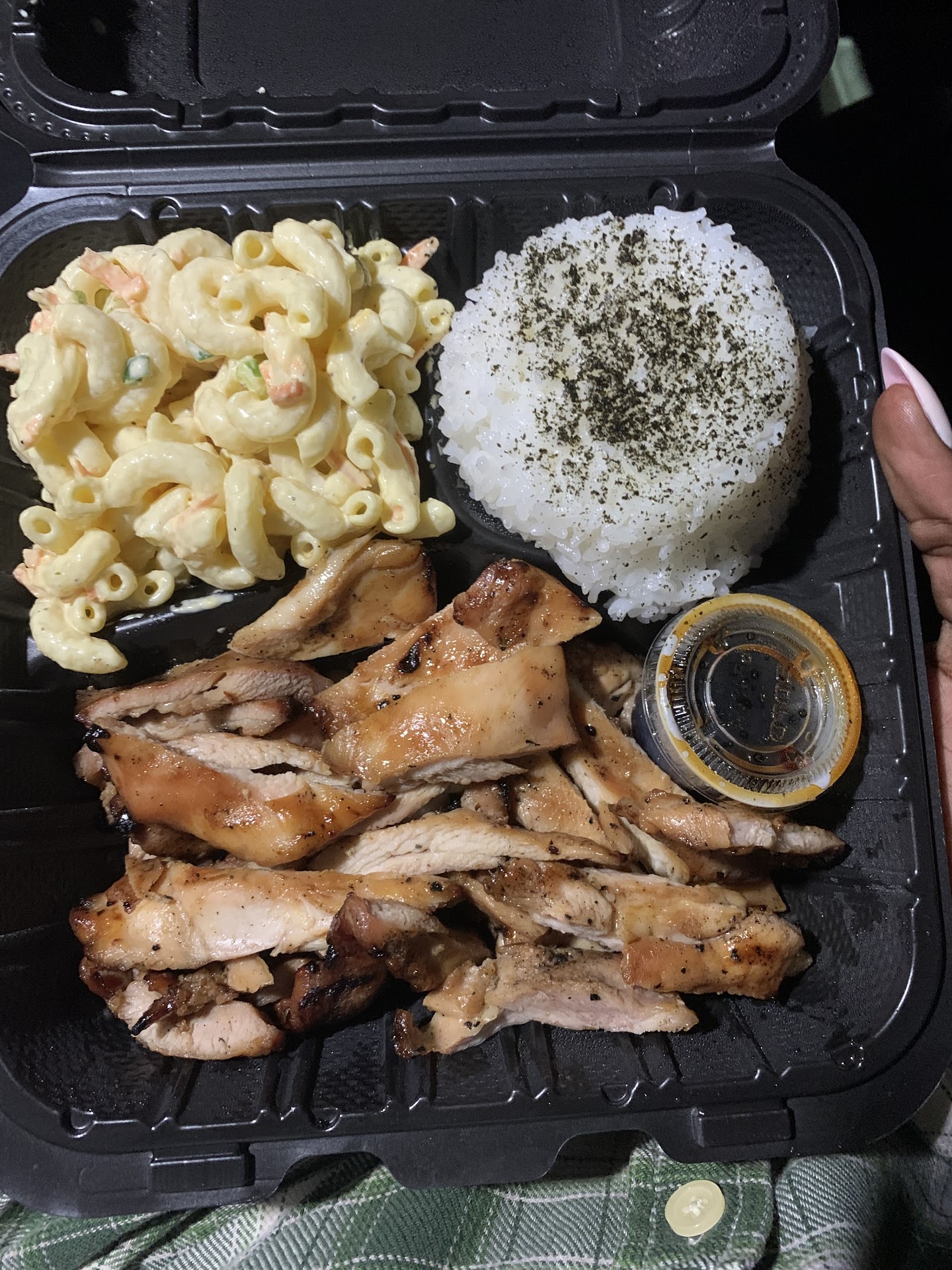 I was a underwhelmed with the Mac salad. They had a strong onion flavor....which I happen to enjoy, but the onion overwhelmed all the other flavors. I'd love to see a more island themed mac salad, but either way - this didn't spoil a great meal!