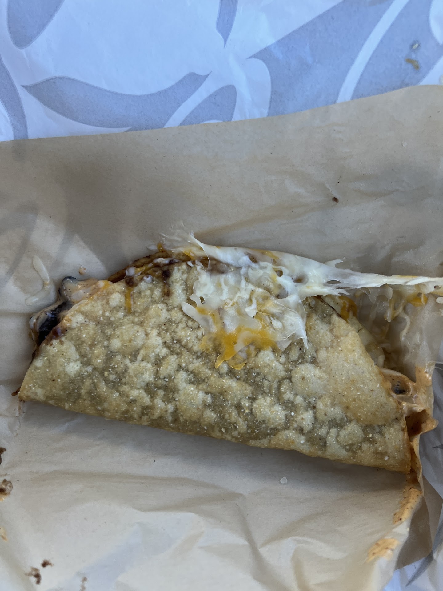 I loved how crispy the cantina taco was. I can't comment on the chicken because I substituted it for black beans, but I thought the taco had a really satisfying crunch that remained throughout. The other part of this I loved was the cheese - I found this to be melted amazingly, and there really was a ton of it. I would definitely consider getting this again