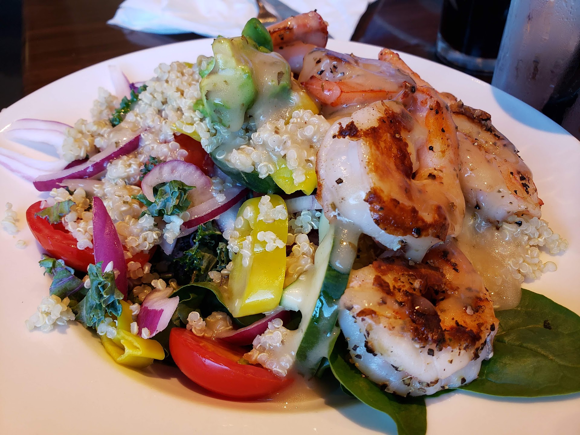Iām torn between 2 and 3 stars and wish I could do 2 1/2 stars, but Iāll give it 3 since nothing was seriously egregious. I took my older kids to dinner at The Porch (which ironically does not have an actual porch; I think Cornerstone and The Porch ought to switch names, frankly) to celebrate a few personal achievements for each of us last night and it was very disappointing, unfortunately. In fact, every time Iāve eaten there, something has been off each of the 4 or 5 times Iāve been there. The atmosphere is lovely with big open spaces and lots of huge windows to go with its trendy vibe. The staff was kind and friendly and it was very busy with a few large parties with reservations coming and going while we were there, so I get that that was a factor in our experience this last time. When we sat down, they had just cleaned our table, but it left a very wet residue of bleach water, so I asked for a napkin or something to dry it and our server wiped it for us. We ordered the fettuccini, the vodka tortellini, the Marsala salmon, garlic bread, and I chose a side Caesar salad with mine. When our food came (at a reasonable length of time), my salmon was well overcooked and my sonās tortellini was cold. We had to wait a while to actually flag someone down so he could ask if they would heat it up. They took it and it was quite a long while before they brought it back to him, leaving him to sit and watch us eat our food for 20 min. My side salad was not a Caesar salad, but a house salad with Caesar dressing on the sideš§. Our garlic bread didnāt come, so we had to wave someone over to ask for it. We were at the very end of our meal when our bread finally came. The bread was not what any of us consider garlic bread to be. It didnāt taste garlicky at all, instead, it was slathered with mayo and topped with a thick layer of melted cheese on top. It was very odd and kinda grossed me out. My salad was good despite it not being what I ordered and I really liked the garlic mashed potatoes. The salmon was way overcooked but tasty even though itās a strange concept to me to have Marsala mushroom sauce with fish. The fettuccini lacked flavor and my other son kept saying it didnāt taste like anything. I told him to add some salt to help. Our server only checked on us once and that was at the tail end of our meal where we didnāt really get the chance to actually answer because he quickly left to get the bill. We were not offered any price reductions on anything despite them knowing that the food was cold and had to be heated and the garlic bread came way too late. My norm isnāt to complain about everything or knit pick to find negative things, but I felt like I was that person last night with the amount of things we had to flag them down for. I did leave a decent tip despite everything because Iāve worked in a restaurant and know how stressful it can be. But, in the end, I am sad and very disappointed that I had to spend $100 on a meal that had many issues that we were all frustrated about and disappointed with. I make an appallingly low salary at my new job, so itās extra hard to spend that much on something that failed in so many ways. My son also added that the bathroom sink was too tiny and one of the stalls didnāt lock. I guess my overall impression is that ownership or management (or both) seems to be either apathetic or just inexperienced since Iāve always had some sort of glaring issue with the food or service every time Iāve been there over the past 8 or so years. I hate writing negative reviews because the restaurant business is a tough, thankless one, but this one is, sadly, warranted. I hope The Porch can get it together. It has so much potential...
