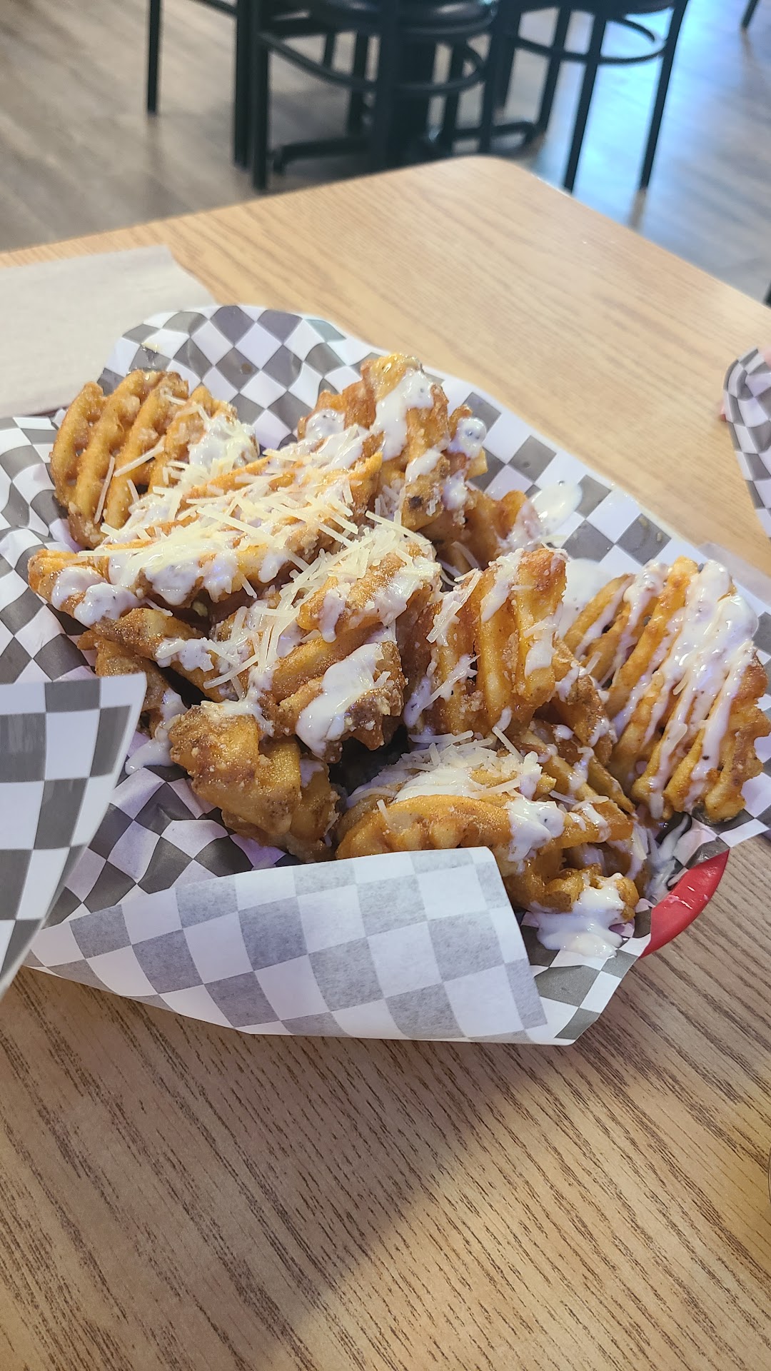 Read moreI’ve been to wing central multiples time and NEVER had an issue til today. It was very disappointing. Mostly the food! The wings were ok, but very inconsistent in size. My hubby had a 12 piece and most were decent sized, but more than a few were the size of my pinky! (tiny). The garlic parm fries looked and tasted like they were dumped into the basket without letting the oil strain. My steak fries were waaaaaay over seasoned with salt! I had to ask for some with NO salt and those came out overcooked. The lemon pepper dry rub was gross! I’m pretty sure I’ve tasted the same stuff from the dollar store. It tastes like pure salt and no lemon. Had to scrape my husbands wings to get the seasoning off. My daughter’s onion rings were ridiculously over cooked! They didn’t even resemble onion rings. The waitress was pretty nice about it though. But even with a “discount” we still paid $50 for garbage food. Overall service wasn’t great either. We waited about 20 min after getting menus to order, then didn’t get anymore service when business started to pick up. We wanted to order a soda and didn’t get to, but we also did not get refills on our waters or lemonade. I will not be going back unless I start to see great...