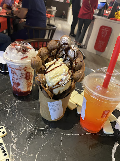 The atmosphere is amazing on a weekend and even thought I should be inviting my back I sometimes sneak a weekday trip after door dash. This place has been here three years but had it not been for my sister I would have never known Gong Che even existed. It’s Family Friendly and each location is so Date night worthy! The egg waffle is amazing 🤩 I have not tried the Mochi Donut but just from sitting here and watching a family beg for them to make it even though it is only available on the weekends should tell you everything you need to know. lol Do yourself a favor and bring a few friends!...
