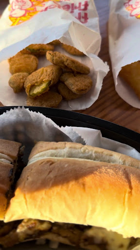 We split 3 chili, cheese and slaw hot dogs. We had an order of fried pickles and polished it off with a peanut butter shake. The fried pickles were fine and served with some good ranch sauce. They were probably frozen and flash fried but good. The Chili, cheese, slaw dogs were very good. We got them with ketchup and mustard. The amounts of Chili, cheese and slaw were perfect....not overwhelming.