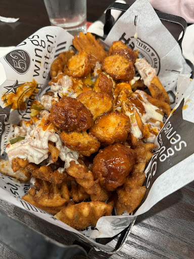 Read moreUpon arrival I was seated by a polite and friendly hostess, and the waiter swiftly took my drink order. The restaurant is very open with plenty of seating, with booths, tables, and a bar front for those looking to come in for drinks. I ordered an espresso martini and coca cola, the martini was a little on the sweet side, the coca cola had that nice bubbly mix you want from a fountain drink. I ordered the Nashville in a basket, potato skins, and mind blowing chili for starters. For entrees I ordered the french dip and queso burger, with fries, both regular and sweet potato, as well as pub chips. The Nashville in a basket came with boneless chicken and waffle fries with pickles layered in queso and sauce, I asked for buffalo sauce with the chicken as well. The chicken was juicy and tender and cooked to perfection, and the sauce and queso really elevated the flavor, the waffle fries were somewhat under seasoned. The chili and potato skins were average and what one would expect from a diner. The french dip, pub chips, and regular fries were average and what you would expect of pub food. The queso burger was brilliant, it was quite juicy and unique in flavors, with fried jalapenos, and a light yet flavorful layer of queso and tortilla chips, additionally the sweet potato fries were exceptionally seasoned, and had great flavor. If you’re looking for an American cuisine pub and grill, that has something for everyone, and has good service and an inviting atmosphere, you can’t go wrong here, Corner Pub and Grill even offers a gluten free menu for those with Celiac’s. I highly recommended trying their sweet potato fries, and if you’re having any chicken, their buffalo...